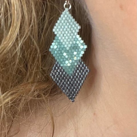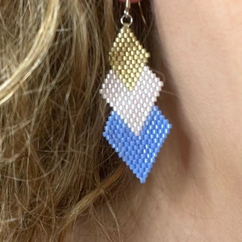 Perlen er gennemsigtig men chancerer i lyset i blå, røde og gullige nuancer.