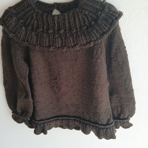 SÆLGER DENNE SMUKKE ULDSTRIKKE TRØJE TIL EN PIGE CA STR. 7 TIL 8 ÅR.