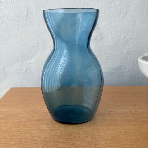 Glad med indgraveret mønster. Glas med stilk og fod, egnet til pynt eller som vase til evt en hyacint