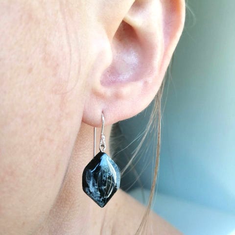Super fine og lette øreringe lavet med polymer ler i forskellige sorte og grå toner med