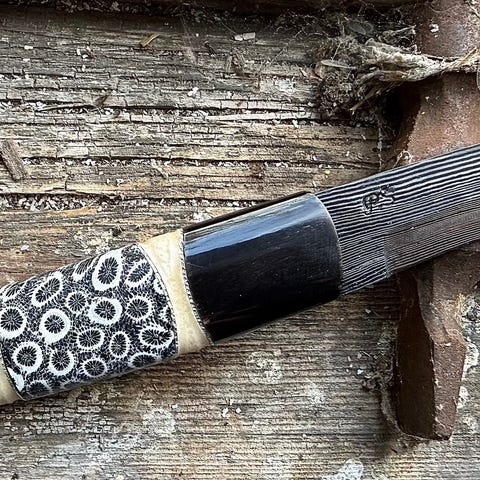 Skæfte i Ziricote med indlæg af stabiliseret mammuttand og riflet tin.