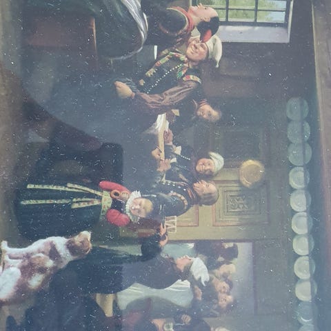 Trykket er i fin stand og præsenteres i en elegant metalguldramme, der fremhæver motivets farver. Perfekt til samleren, historieinteresserede eller som en dekorativ genstand til kontoret eller stuen.
