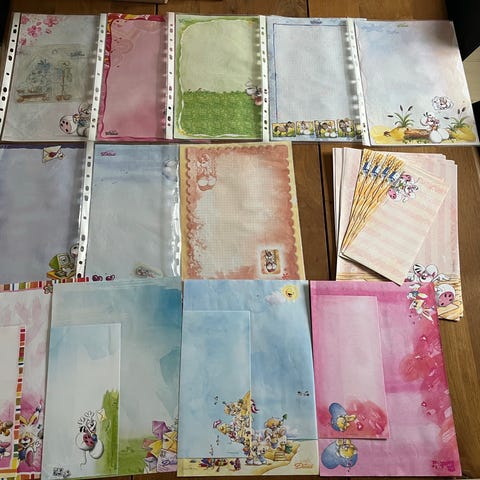 Diddl ringbind med masser af brevpapir og kuverter i plastlommer, hvor af de 6 stk. er Diddl til A5.