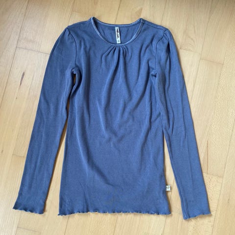 Farven fremstår mest rigtig på billedet, hvor blusen er mest mørk.