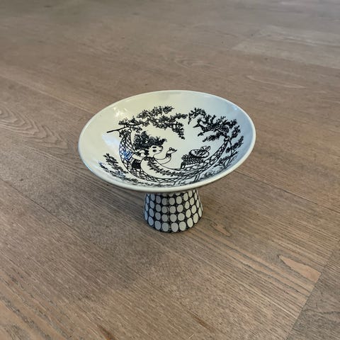 Bjørn Wiinblad Nymølle Praline opsats med motiv af kvinde i hængekøje med sort stregtegning