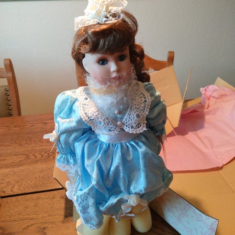 Dukken er i fin stand og uden brugsspor. Har bare stået til pynt