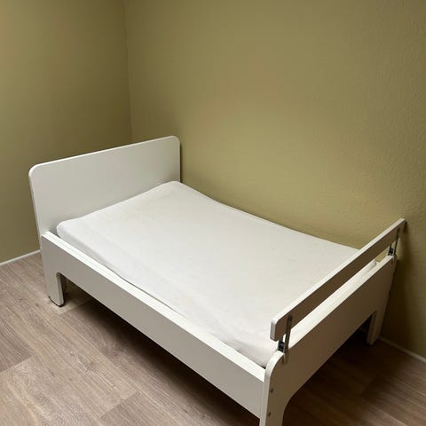 Der medfølger madras og lagener til alle længder, men vi har ikke sengehesten.