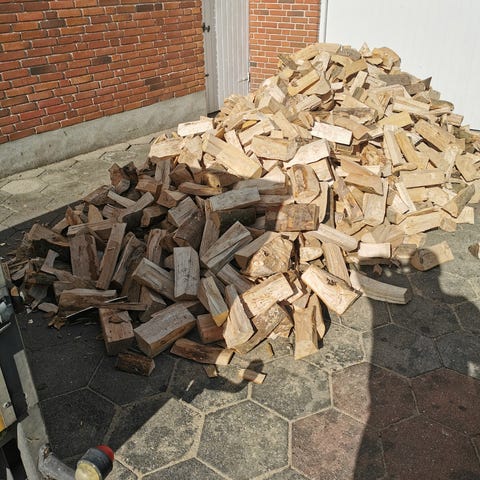 Brændestak med masser af brænde til vinteren opskåret i passende og håndterbare stykker.
