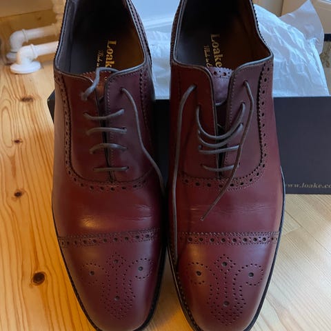 Klassiske, stilfulde håndlavede Oxfordsko fra engelske Loake 1880, model Aldwych i kalveskind købt hos Hr. Sko. Str. 42/UK 8. Nypris 2.999kr. Købt med 20% rabat på kampagne.