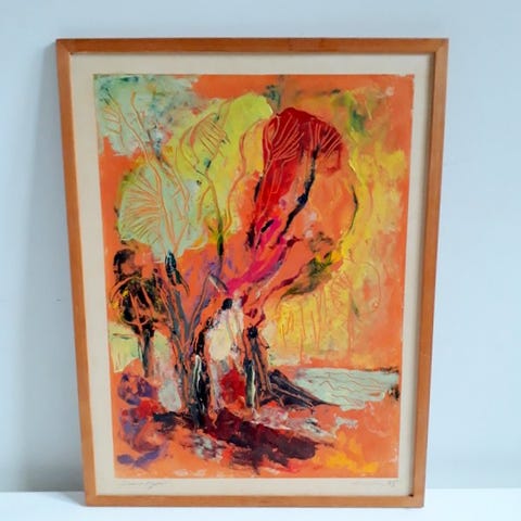 Indrammet trykt tegning i paspartou.