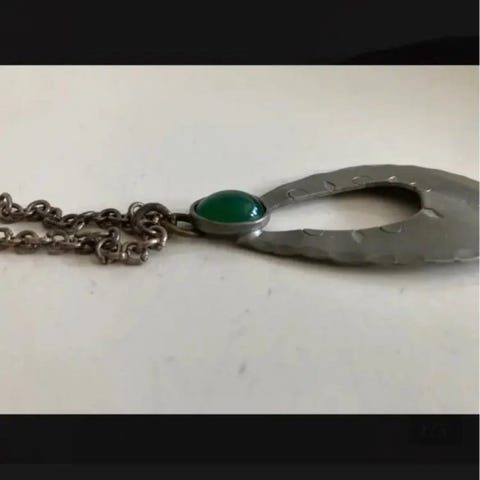 Vintage Halskæde retro i fin stand, 66 cm cm lang og med et smukt rundt vedhæng, 4, 5 cm med en cirka 1,5 cm sten. Neckless vintage tin lyng Lyserød kugle cirkulær cirkel