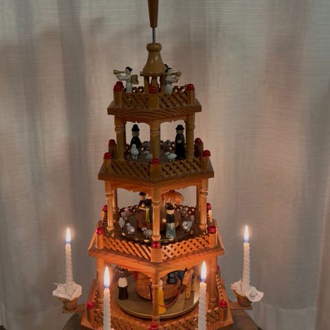 Traditionel tysk julepyramide, en dekorativ julepynt, der stammer fra Erzgebirge-regionen i Tyskland. Et meget velholdt eksemplar.