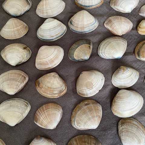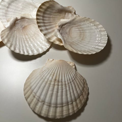 2 muslingsskaller, ukendt, 2 flotte og skinnende muslingskaller jeg har haft med hjem fra San Torini