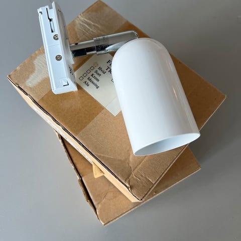 6 stk Finnerup Spots. Røde, næsten ikke brugt. Højde er 21 cm. Målene på lampehovedet er 12 x 12 cm. Lamperne er til max. 100W. Lampen har justerbar vinkel og er designet til brug med specifikke projektorer. Den er fremstillet af holdbart materiale og egnet til indendørs brug. 350 kr /stk, men bud modtages. Samlet pris