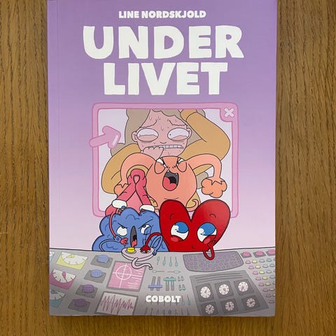 Line Kledsen Jensen Hver Dag Starter Det Forfra graphic novel. Indeholder illustrationer og tekst, der fortæller en sammenhængende historie, fortalt over et års hændelser af forfatterens liv.