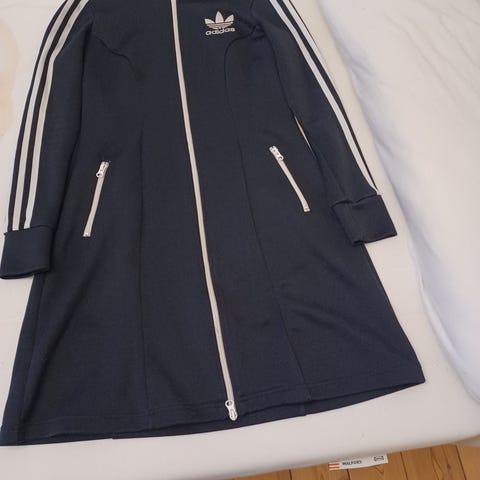 Den er kulsort med Adidas ikoniske hvide striber og hvid logo på det ene bryst.