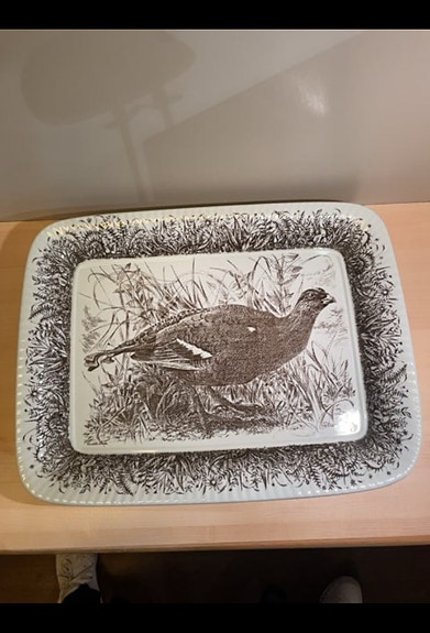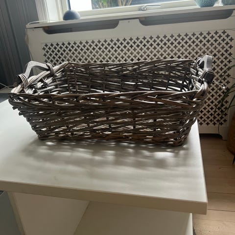 Kurven er flettet med en spiralformet hank og har en dekorativ bundplade.