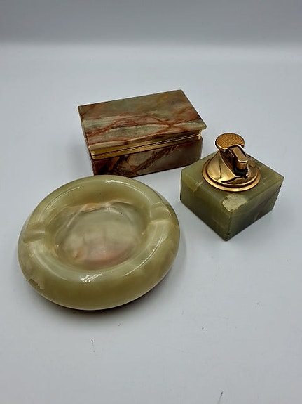 Produktet består af tre blomsterformede smykker i metal med detaljeret udskæring. Hovedfarven er hvid med gyldne elementer.
