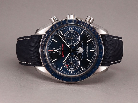 Modellen måler 37 mm og er udført i stål med en sølvskive, månefase samt dag-, dato- og månedsvisning.