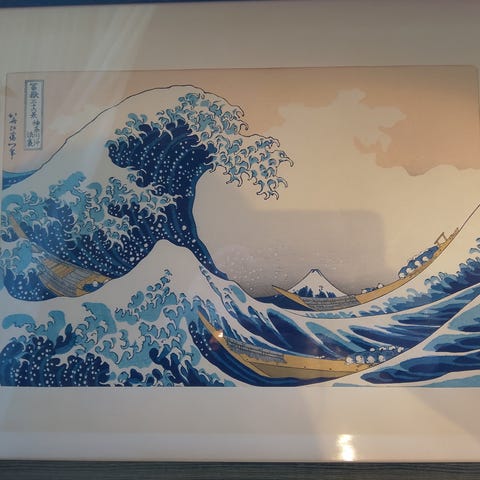 Reproduktion af værket 'The Great Wave of Kanagawa', et tryk skabt af Hokusai mellem 1830 og 1832.