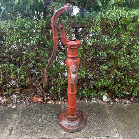 Gammel støbejern, ny renoveret, med nye bolte over alt, nymalet 2 gange, kun til pynt. Kan ikke købes på fiks og færdig.