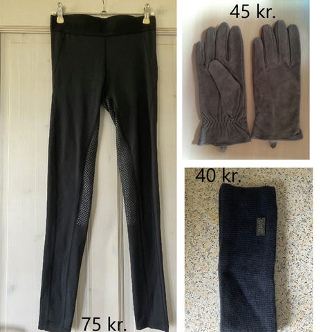 2 par fleecebukser i str L med elastik i sort samt fleecehue og flere par sokker i sort og grå.
