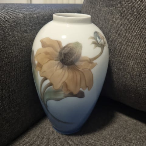 Fin BLÅ BLOMST vase, fejlfri, 16 cm