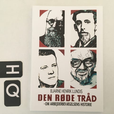 Den røde tråd er sort , Sort af typografisk bly og tryksværte, emne: historie og samfund, Hardback, indbundet, 215 sider, år 2000, fremstår i meget pæn stand.