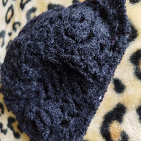 Uldhat med blomsterdetalje (str. Ø 28 cm)