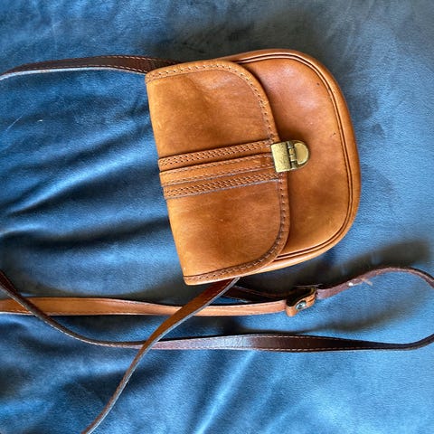Brun læder skuldertaske fra Burkelys (str. 21x28x8 cm)