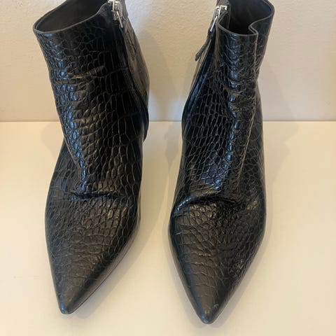 knæhøj støvle udført i ruskind med rund snude. Støvlen har læder bånd bagtil som kan bindes. Ydermere har støvlen en diskret lynlås på indersiden.