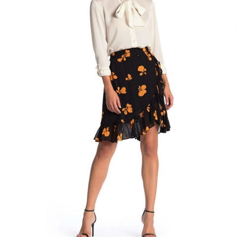 Ganni blondenederdel størrelse M. Fremstillet i gråt polyester materiale med blomstret mønster
