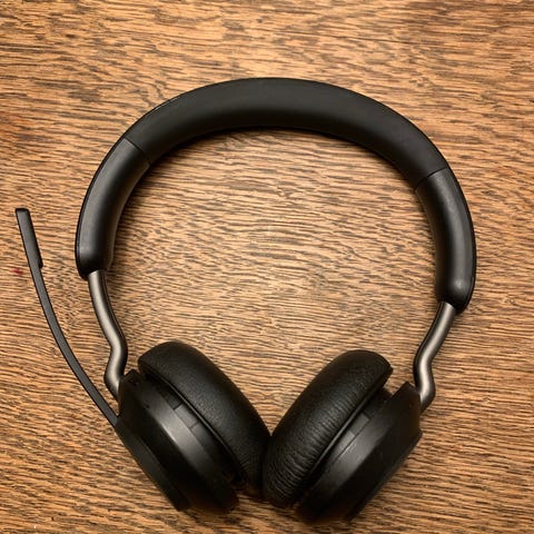 Jabra Evolve2 65 hovedtelefoner i sort farve. Trådløse med støjreducerende mikrofon, justerbar hovedbøjle og komfortable ørepuder. Leveres med opladningskabel og USB-dongle til trådløs forbindelse.