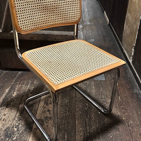 Frisvinger stol som har brug for en opstramning i flettet på sædet eller ny flet.