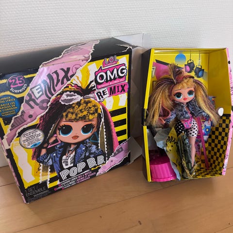 OMG L.O.L. dukke med lyserødt hår og tilbehør inklusive rulleskøjter. Dukken har påklædning bestående af en lyseblå jakke og solbriller. Leveres i original emballage med spejl og tøjstativ.