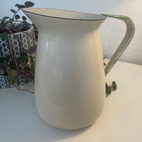 Sjælden Glud & Marstrand sæbeholder med kurv til svamp og ophæng samt flad skovl af emaljeret metal. Sælges samlet.