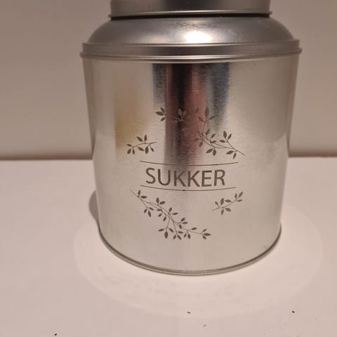 Tre dåser til sukker, kaffe og the sælges. Fra Matadorserien. Metal. Brugsspor på thedåsen.