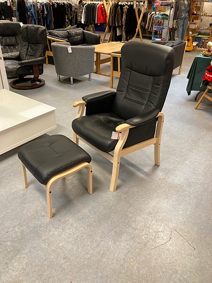 Stolen er i rigtig fin stand. Dog er den ene strop gået fra. Se billede.