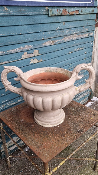 Franske krukker i støbejern. 22 cm høje. 20 cm brede.