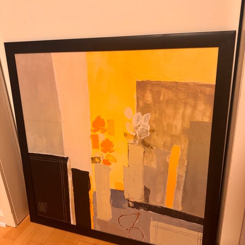 Maleri af hund med en ramme i guld. Maleriet forestiller en hund i naturlige farver og detaljeret udførelse. 40x50