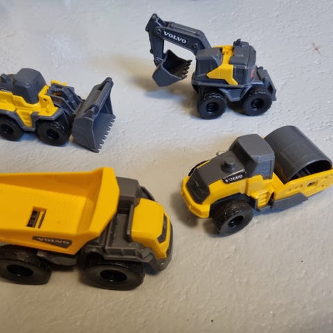 Dumper, tromle, 2 gravemaskiner og frontlæsser