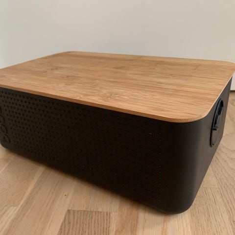 Bodum brødboks med låg i bambus og sort. Designet til opbevaring af brød og bagværk for at bevare friskhed.