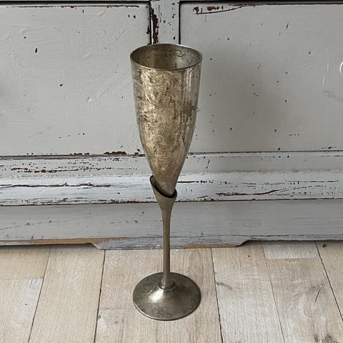 6 virkelig smukke hammerslåede champagneglas i pletsølv, perfekte til nytårsaften. H16 x Ø6,5 cm. Sælges samlet, prisen er for alle 6.