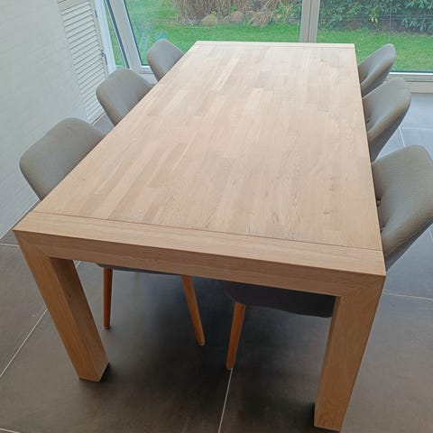 Ludet spisebord i massiv fyr med 2 "udtræksplader" på hver 46 cm
