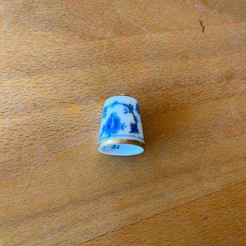 Meget fint B&G musselmalet fingerbøl som vedhæng i forgyldt kæde.