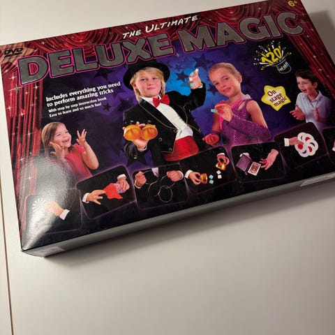 Godt begyndersæt til børn. Meget fin stand og alle tricks og instruktionsbog medfølger. Flere tricks er uåbnede, da sættet ikke er brugt meget.