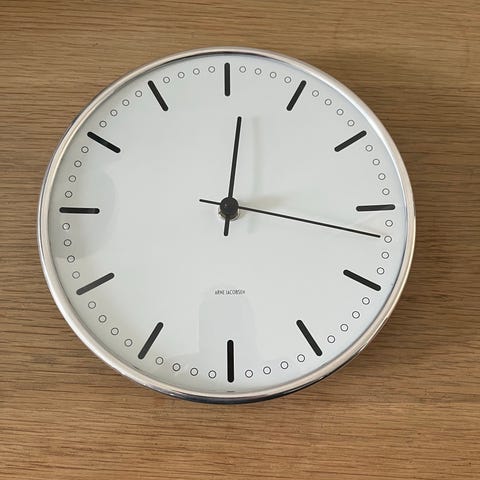 Arne Jacobsen vækkeur City Hall i sort. Har lidt hvide mærker, se billeder. Jeg har dog ikke forsøgt at fjerne dem.