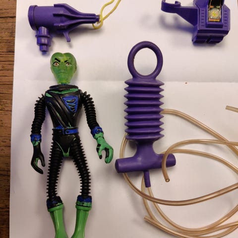 Sælges: En sjælden og autentisk legetøjsmørtelkanon fra den ikoniske Major Matt Mason Space Probe Pak fra 1960'erne. Dette er et fantastisk stykke retro legetøjshistorie og et must-have for samlere af vintage actionfigurer og rumlegetøj.