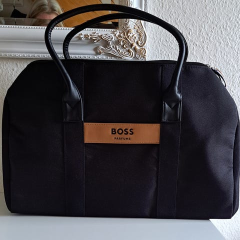 Rigtig flot taske fra Hugo Boss i farven lyserød med lang sølv rem og tilhørende pose