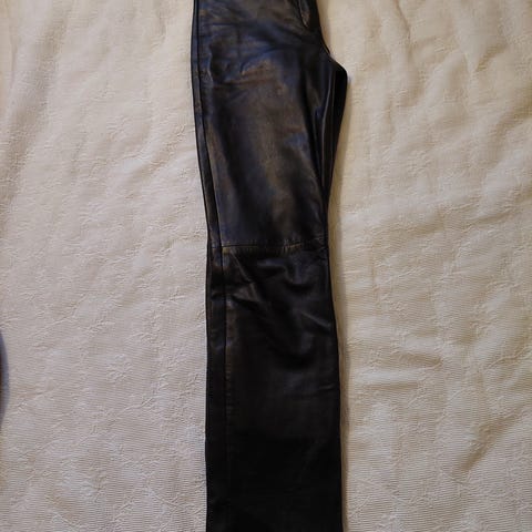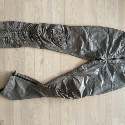 Flotte forede skindbukser. Lynlås midt bag, længde ca. 111 cm, skridtlængde ca. 75 cm. I flot stand.